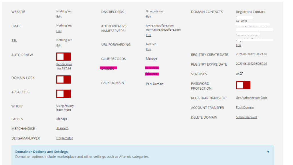 Se utilizzi i server dei nomi personalizzati, devi collaborare con il tuo provider DNS di terze parti per firmare la zona DNS per il tuo dominio. Proviamo ad attivare DNSSEC utilizzando Cloudfare COME dns di terze parti uno dei migliori in circolazione, e il provider del dominio PorkBun. Nell'immagine sopra dove ho evidenziato e l'iniziale della configurazione dnssec, puoi premere Manage per accedere ed inserire le credenziali che tra poco Cloudfare ci darà.