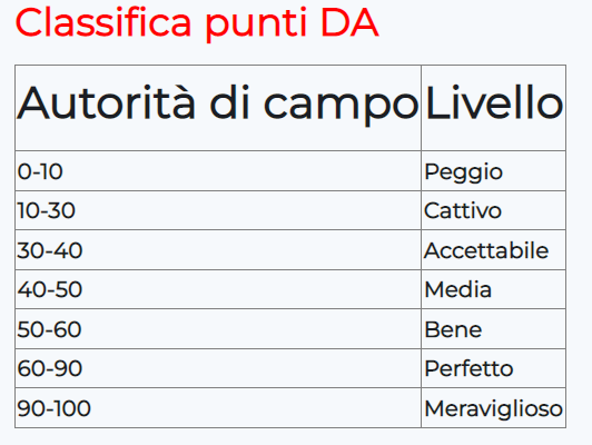 La DA si basa su una scala da 1 a 100 e un sito web con una DA alta (70 o più) è solitamente considerato affidabile da Google e da altri motori di ricerca.