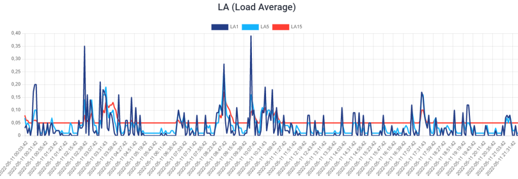 Riguardando il primo immagine che abbiamo condiviso dovresti sempre puntare a tenere controllato la linea rosso siglato LA15. Il valore di quest'ultimo idealmente non deve superare l'1.0. Se nel caso dovesse superare vorrà dire che hai molto traffico oppure potrebbe essere anche qualche attacco DDOS oppure hai qualche impostazione da dover ottimizzare che sta creando il sovraccarico del server nell'arco dei 15 Min.