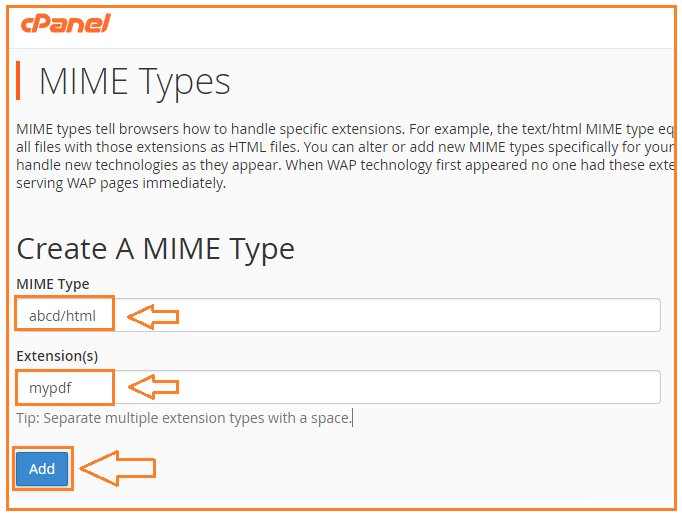 MIME sta per Estensioni di posta Internet multiuso. I tipi MIME costituiscono un modo standard di classificare i tipi di file sul web. I programmi Internet come web server e browser dispongono tutti di un inventario di tipi MIME. In modo che trasferiscano i file di tipo costante all'interno dello stesso metodo. Non importa su quale tipo di sistema operativo stanno lavorando. MIME è stato progettato principalmente per SMTP. I tipi di contenuto definiti dagli standard MIME sono importanti nei protocolli di comunicazione al di fuori dell'e-mail, come HTTP per il World Wide Web. I server inseriscono l'intestazione MIME all'inizio della trasmissione Web. L'hosting cPanel è considerato una delle migliori soluzioni di hosting dalla maggior parte dei professionisti di Internet. Il cPanel è la piattaforma di hosting punta e clicca completamente automatizzata che si presenta chiaramente come uno dei migliori pannelli di controllo per ogni utente.