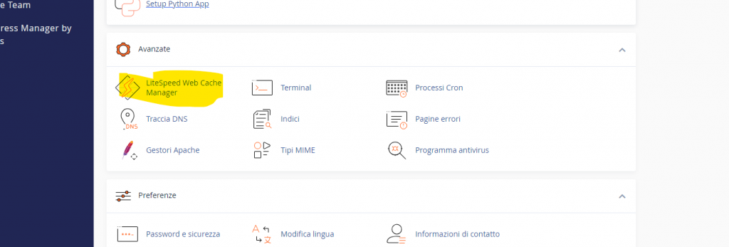 Infine abbiamo il “Gestione della cache LiteSpeed". Sotto troverai il “WordPress Cache".
