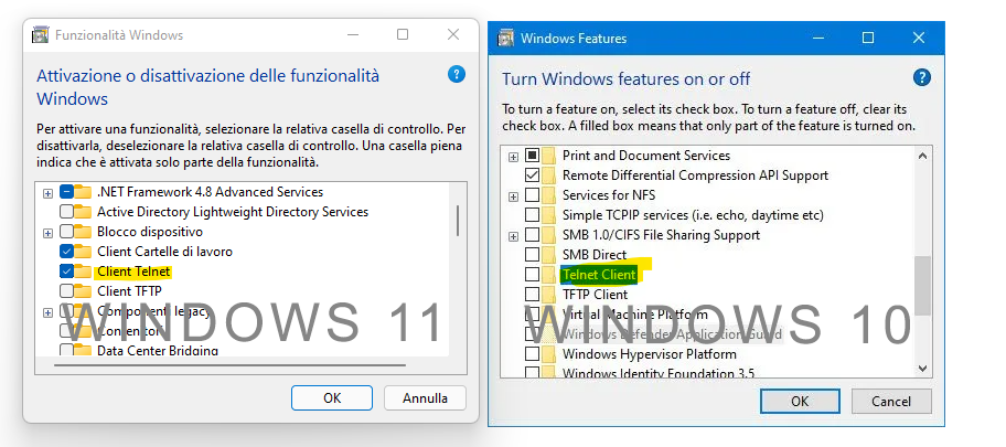pkgmgr /iu:"TelnetClient" OR dism /online /Enable-Feature /FeatureName:TelnetClient