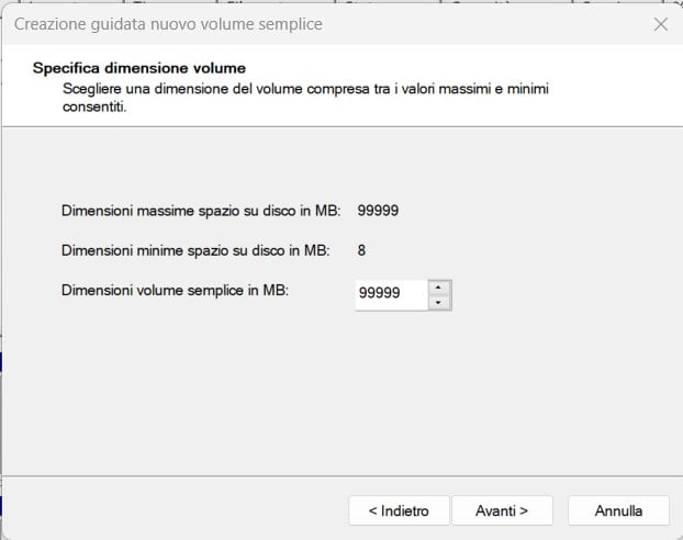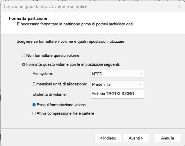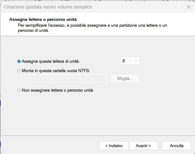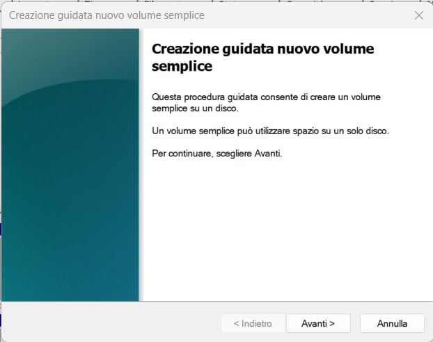 Segui l'installazione guidata per procedere alla creazione della partizione;