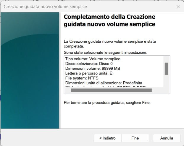 Puoi clicca su Fine, sarà aperto in automatico la la partizione che hai creato e vedrai che è vuoto ed pronto ad essere utilizzato.