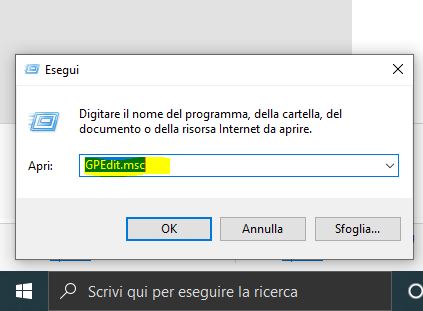 Avvia l'Editor Criteri di gruppo digitando gpedit.msc in Esegui.