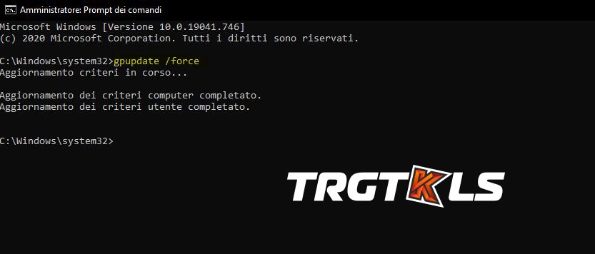 Ora avvia il prompt dei comandi e inserisci gpupdate /force per applicare le modifiche apportate ai Criteri di gruppo.