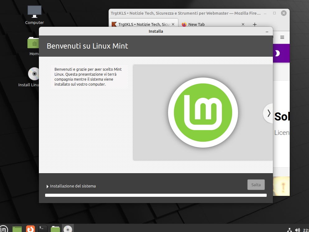 Sarà avviato una simulazione, in base alla tue preferenze potrai scegliere se installare o utilizzare la chiavetta per un utilizzo occasionale. Se hai deciso di installare, nel desktop trovare un icona "Install Linux Mint" clicca per avviare l'installazione.