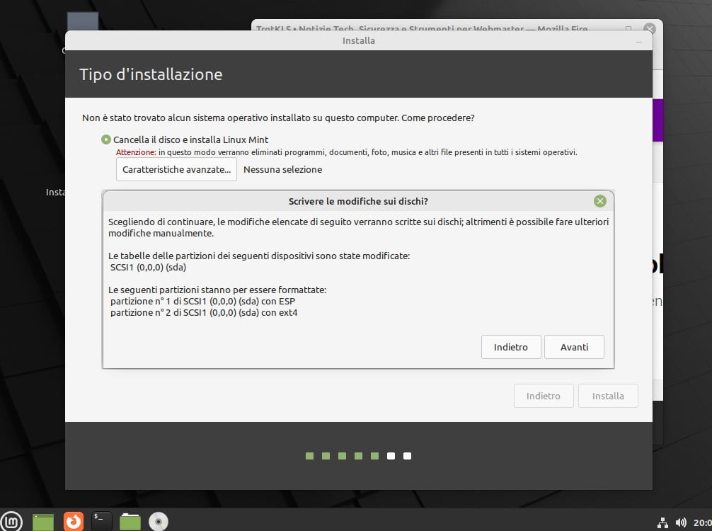Scegliere la partizione dedicata per l'installazione di Linux Mint, se hai gia un sistema operativo attivo su qualche partizione dovrai eseguire la formattazione prima di provedere.