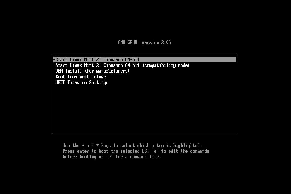 Quando il sistema si avvia con il supporto di avvio di Linux Mint, sarà presente la schermata sottostante, Scegli la prima opzione ”Start Linux Mint” e premi invio