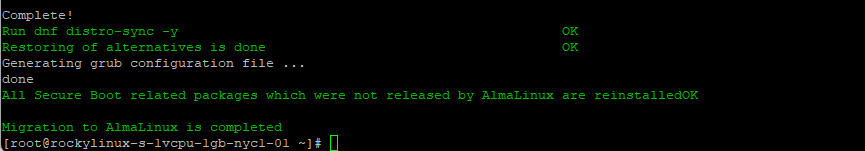 La migrazione da Rocky Linux 8 ad AlmaLinux 8 richiederà tempo a seconda delle risorse del tuo sistema come la capacità di memoria, il processore di sistema e la velocità di Internet.