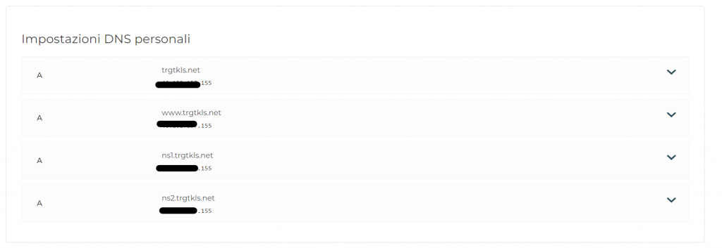 Se il problema persiste, contatta il tuo registrar o host web per ricevere assistenza. Se il dominio non propaga i name server, puoi creare dei glue record direttamente dal tuo registrar del nome di dominio e aggiungere i record A per agganciare l'indirizzo ip e il name server creato lato server, ad esempio;