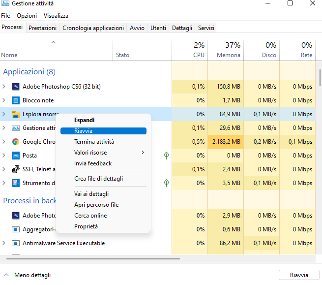 Riavviare Windows Explorer.exe tramite Task Manager