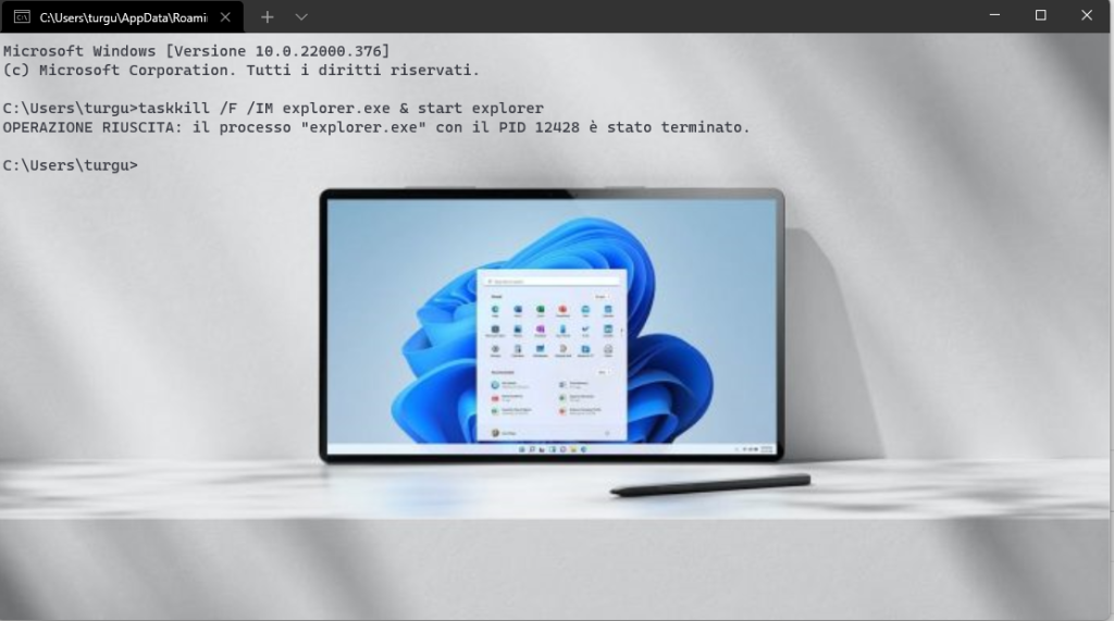 Riavviare Explorer.exe dal CMD