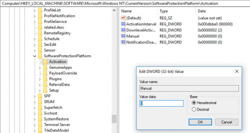 HKEY_LOCAL_MACHINE> SOFTWARE> Microsoft> WindowsNT> CurrentVersion> SoftwareProtectionPlatform> Attivazione