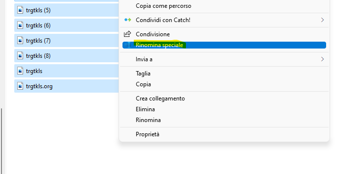 Per rinominare più file in blocco con la stessa struttura del nome, segui questi passaggi: