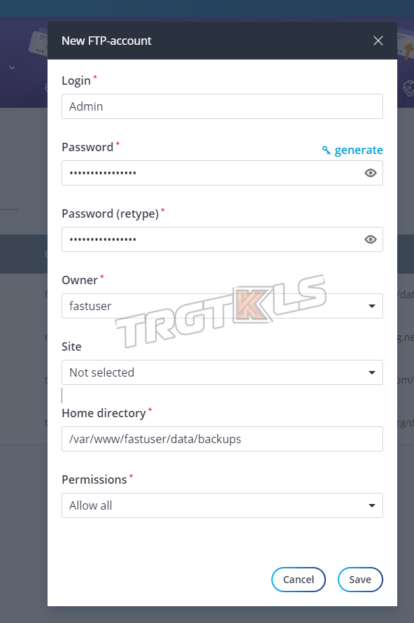 I backup verrà riscritto come da configurazione ogni settimana, per la tua sicurezza cerca di usare nome directory dei backup complessi ad esempio "back8293p2Up". Rendi accessibile solamente all'amministratore Owner di fastpanel.