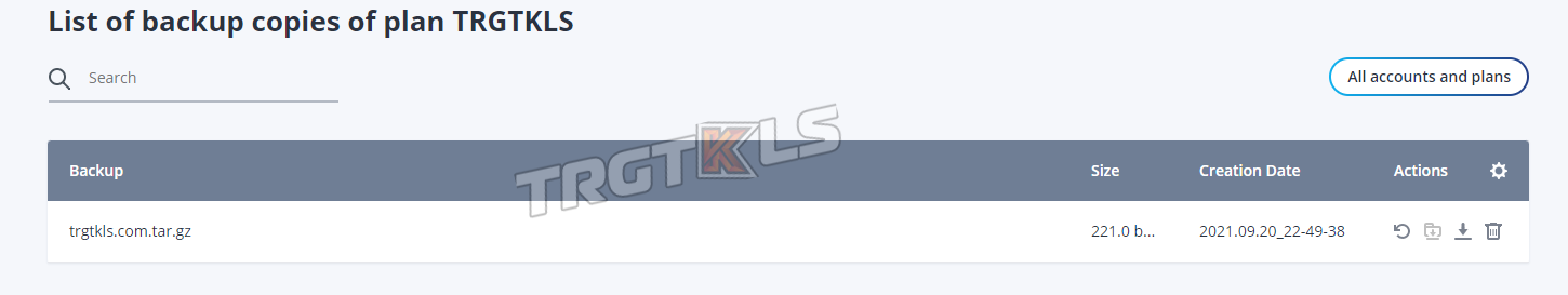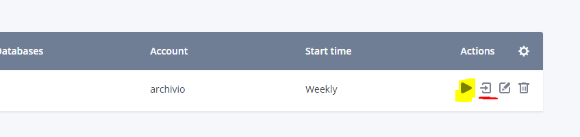 Ci siamo ora il sistema di backup e configurato correttamente, quindi ogni settimana il mio account "archivi" eseguirà il backup del sito web completo + database. Ora vediamo dove trovare questi backup tramite browser o tramite accesso FTP. Invece di aspettare una settimana, avviamo ora il nostro backup e testiamo il funzionamento. Avvia il backup tramite il pulsante PLAY a destra.