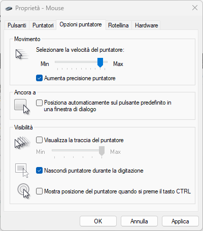 Come modificare la risoluzione del mouse si Windows 11(DPI)?