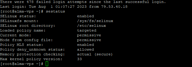 Questo output ci fornisce anche alcune informazioni utili. Il primo di questi è il punto di montaggio di SELinuxfs. SELinuxfs è uno pseudo filesystem come /proc: in fase di esecuzione, è popolato dal kernel Linux e contiene file utili per documentare lo stato di SELinux.
