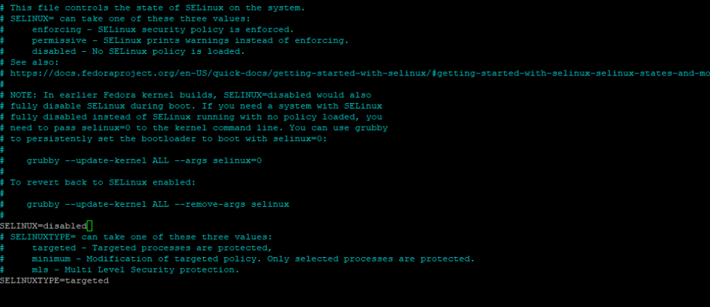 nano /etc/selinux/config