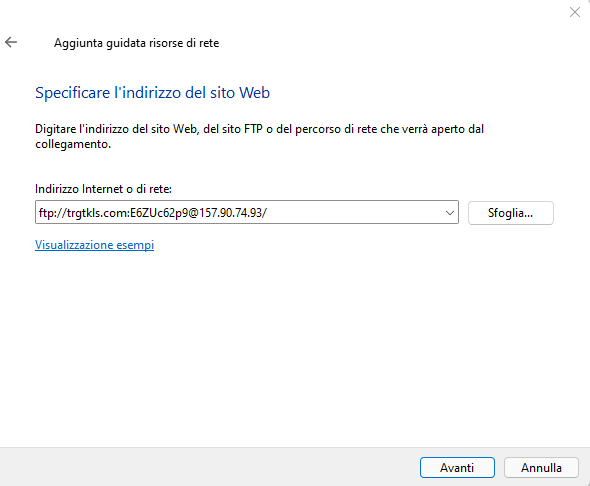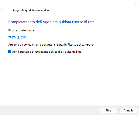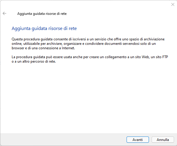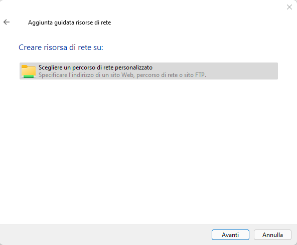 Clicca Aggiungi Percorso di Rete e segui i seguenti passaggi