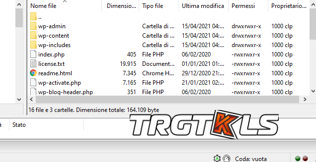 Se tutto andato bene vedrai una scritte in verde. Ancor chè se non avete creato ancora un utente FTP sul pannello create un nuovo user per accedere al FTP. Accedendo al FTP spostate il contenuto della cartella Wordpress nella Directory principale del vostro dominio, in seguito cancellate il file latest.zip e Wordpress.