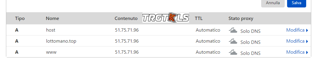 Secondo il nostro esempio, usiamo lottomano.top per il nostro dominio. Quindi, nel nostro caso dovrebbe essere a: