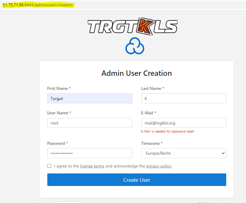 Al termine dell'installazione avviate nella barra degli indirizzi: https://IP:8443