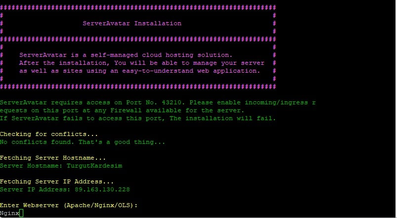 Dopo l'avvio dell'installazione con il comando ./install sarà necessario scegliere l'architettura del web server, io utilizzero Nginx.