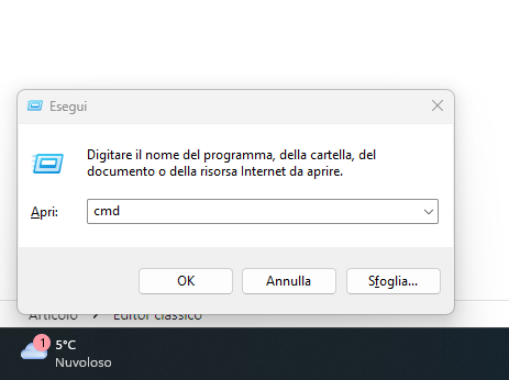 Premi Tasti Windows + R comparità esegui, qui digita CMD.
