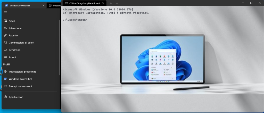 Nel menu a sinistra e possibile effettuare modifiche e personalizzare il tuo avvio di CMD o PowerShell.