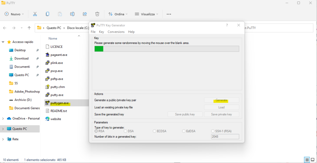 Avvia il programma puttygen.exe.