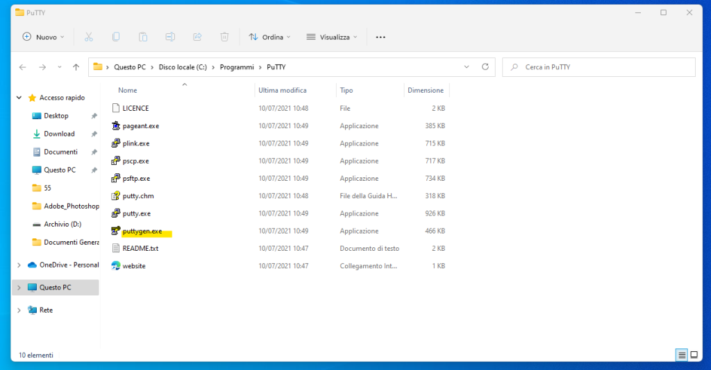 Installazione di PuTTygen