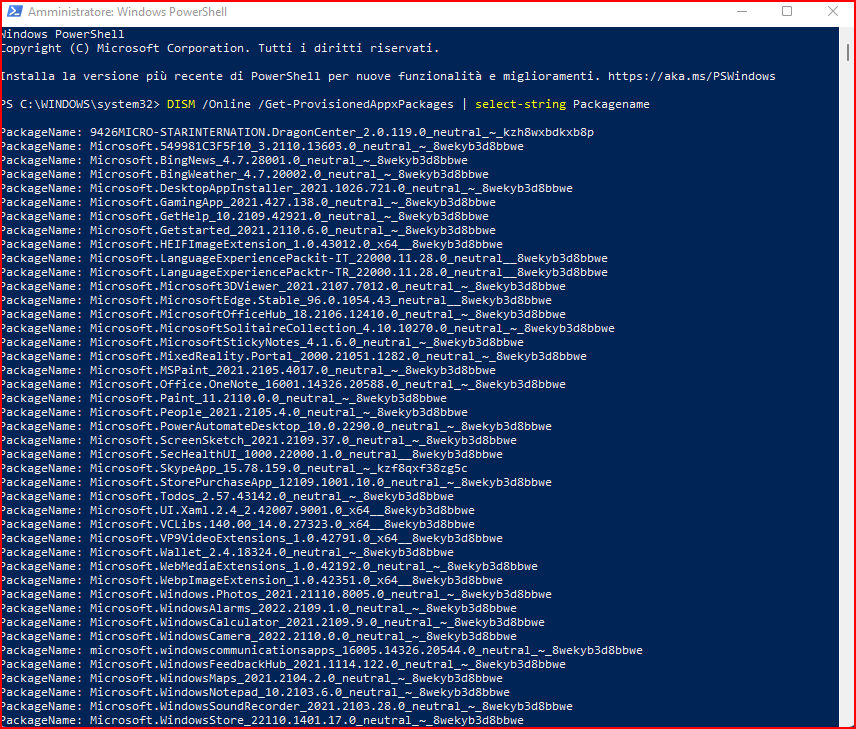 DISM /Online /Get-ProvisionedAppxPackages | select-string Packagename