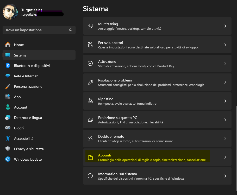 Passo 1: Premi il tasto Windows + I per avviare l'app Impostazioni. Nella scheda Sistema, scorri verso il basso per fare clic su Appunti.