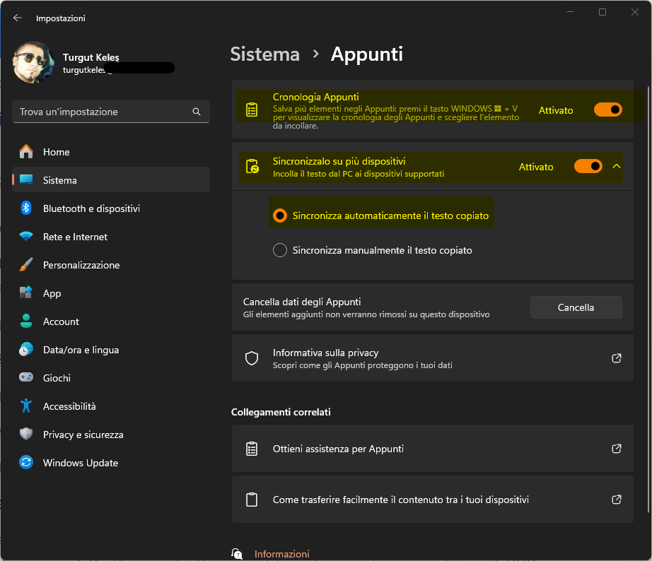 Passo 2: Attiva l'interruttore accanto a Cronologia degli appunti.