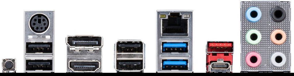 Il posteriore del B550-A Pro, MSI include 2 porte USB 3.2 G2 tra cui una di tipo A e una di tipo C, con 2 porte USB 3.2 G1 di tipo A e 4 porte USB 2.0. Per gli utenti che desiderano accoppiare questo modello con un'APU Ryzen, sono disponibili un paio di uscite video tra cui un'uscita DisplayPort 1.4 e HDMI, con un piccolo pulsante Flashback del BIOS.