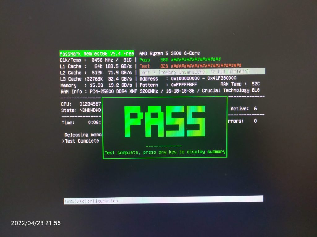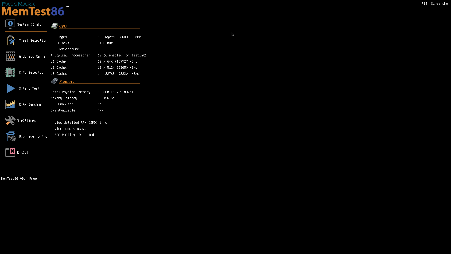 Puoi tornare al menu principale di memtest ed eseguire ulteriori test sulle tue ram;