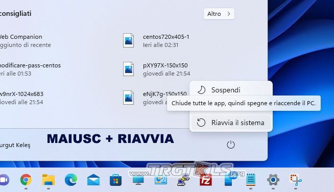 - Una volta raggiunta la schermata di accesso o di accesso, tieni premuto il tasto Maiusc e fai clic sul pulsante di accensione, quindi seleziona Riavvia.