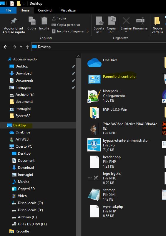 Fare clic sull'icona Esplora file sulla barra delle applicazioni, selezionare Desktop e toccare due volte il Pannello di controllo.