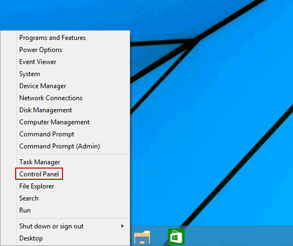 Premi Windows + X o tocca a destra l'angolo inferiore sinistro per aprire il menu di accesso rapido, quindi scegli Pannello di controllo al suo interno.