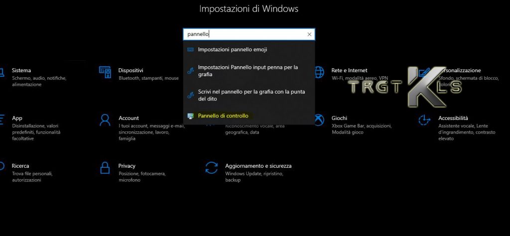Modo 8: aprire il Pannello di controllo tramite Impostazioni.