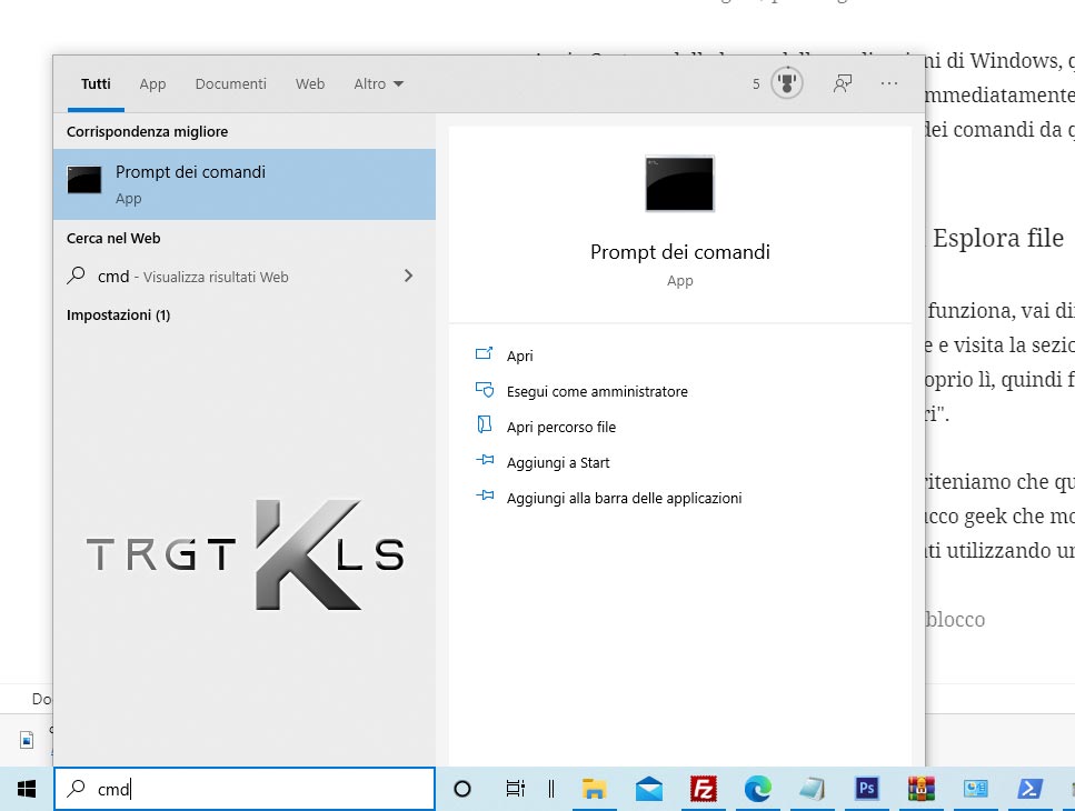 5) Avvia il prompt dei comandi utilizzando Cortana