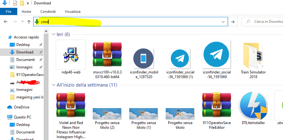 2] Avvia il prompt di controllo dalla barra degli indirizzi di Explorer