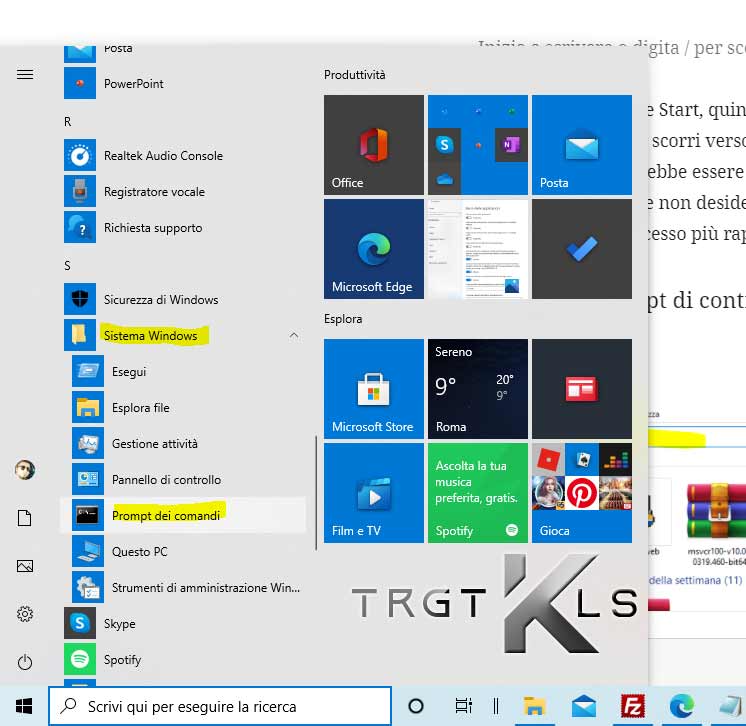 Fare clic sul pulsante Start, quindi andare su "Tutte le app". Attendi il caricamento, quindi scorri verso il basso fino alla cartella Sistema di Windows, da lì dovrebbe essere visibile il software del prompt dei comandi. Tieni presente che se non desideri scorrere, fai clic sulla lettera "P", quindi su "ınvıo" per un accesso più rapido.