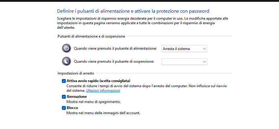 Fast Startup ha lo scopo di rendere Windows 11 più veloce all'avvio, così che puoi accedere rapidamente e iniziare subito il tuo lavoro. Lo fa memorizzando lo stato attuale del sistema in modo che alla successiva accensione del computer, il file di salvata prima di spegnere il pc in ibernazione venga caricato nella RAM e il PC venga avviato rapidamente. Sembra un nuovo avvio (che è), ma la sessione del kernel e i driver vengono caricati dall'ultimo accesso per offrire un'esperienza più veloce.