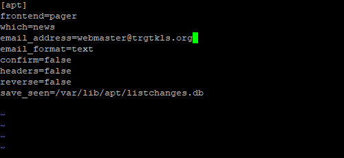 Infine modifica /etc/apt/listchanges.conf e imposta l'ID e-mail:
