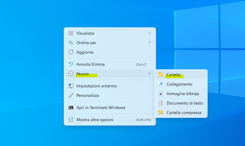 Vai su Desktop, fai clic con il pulsante destro del mouse ovunque, vai su Nuovo e seleziona Cartella.