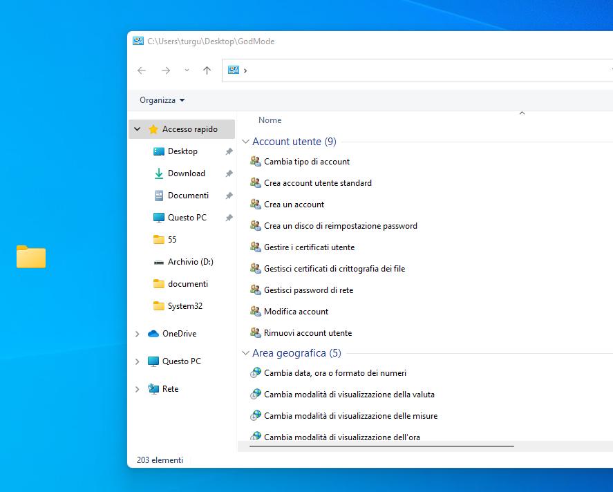 Rinominare la nuova cartella GodMode.{ED7BA470-8E54-465E-825C-99712043E01C}