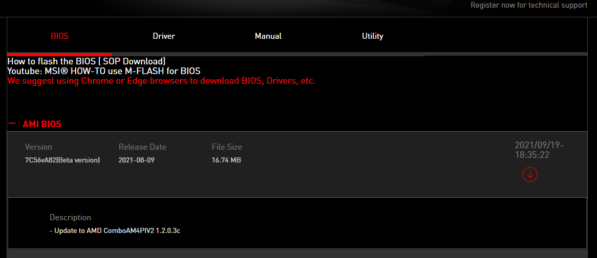 Iniziamo ci serve una chiavetta USB, con seguire questo link per scaricare l'ultimo aggiornamento ufficiale rilasciato da MSI.
